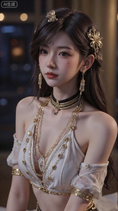 a asian woman, sexy long hair, blue eyes, charming and seductive temperament, distant close-up, golden ratio, movie texture, minimalism, high-end feeling, strong contrast between cold and warm, outdoor scenes,