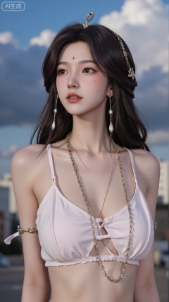 Very detailed face, extremely detailed eyes and face, blue eyes, (vacuum), 8K wallpaper, light leak, beautiful and detailed girl, extremely detailed CGUnity8K wallpaper, an extremely detailed and beautiful, beautiful and detailed eyes, masterpiece, best quality, Real photo level, (frontal shooting panoramic perspective), ( (Full body photo)), dynamic angle, dynamic pose, solo, ancient style silver hairpin with petals, blue sky and white clouds, (C cup), (huge round breasts), slender legs, super good figure, stunning beauty, (whole body in the mirror) , (wearing Lolita nightgown), (light reflects the shadow of the body through the clothes),vacuum,bare and smooth