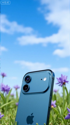 (masterpiece,best quality:1.23),An e-commerce photography image featuring a iPhone 17 air smartphone against a blue sky and white clouds,with purple flowers on the grass in the background.,Xbigbreasts,XbaifengsongyuYH,Xiphone17air,Xiphone17proseries,Xiphone17proseries,Xiphone17air