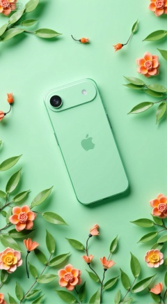 ,(masterpiece,best quality:1.23),,a light green mobile phone floating in the air,surrounded by a variety of colorful flowers and plants. Surreal,fantastical scene design,bright colors,green main tone,with ultra-high resolution and HD images,high resolution 3D rendering,,XXbaifengsongyuYH,Xbigbreasts,Xiphone17proseries,Xiphone17air,Xiphone17proseries,Xiphone17air