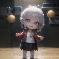Big head doll,big head, small body, Mini Body,top-heavy,cute,Doll Body,Short hands, short feet,Short legs,(masterpiece:1.331), best quality,stitches,Big head doll, big head, small body, cute,Doll Body,Empty-handed,No items in hand,No object in front of you,(A girl), (Solo)(White dress), (Grey pleated skirt), (Uniform), (School uniform), (Knee-high socks), (White shoes),(Golden eyes), (Golden pupils), (Golden irises), (Eyes shining in golden light)(Big smile), (Happy), (Baby teeth),(canines:1.2),(lollipop),(Red rose headpiece), (Exquisite makeup), (Blush), (Earrings),Flowers, Grass field