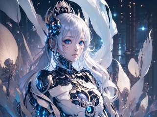 (((masterpiece, best quality, illustration, finely detail))),((extremely detailed cg unity 8k wallpaper, highres)),(beautiful detailed face and eyes and hair:1.1),(an extremely delicate and beautiful girl:1.2),amazing,1 girl,solo,(mecha),(black:1.5),<lora:不是青花瓷第三代-但是机甲:0.5>,(Luminescent particle:1.5),,high saturation,low brightness,