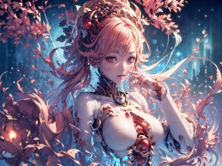 (((masterpiece, best quality, illustration, finely detail))),((extremely detailed cg unity 8k wallpaper, highres)),(beautiful detailed face and eyes and hair:1.1),(an extremely delicate and beautiful girl:1.2),amazing,1 girl,solo,(mecha),(red:1.5),<lora:不是青花瓷第三代-但是机甲:0.5>,(Luminescent particle:1.5),,high saturation,low brightness,