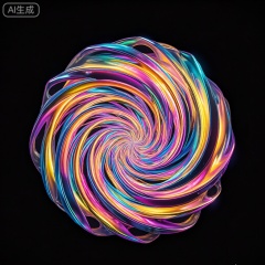 内发光,,,几何体,图像描绘了一个充满活力,创造了一种深度和运动感。背景是黑色的,与明亮的彩色螺旋形成鲜明对比,使其突出突出。整体效果令人着迷,视觉上引人注目,唤起了一种和谐与复杂的感觉。