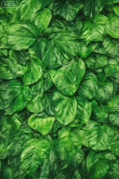 masterpiece, , The image depicts a lush, green environment filled with large, broad leaves. The leaves are vibrant and have a glossy texture, with veins running through them. The lighting highlights the natural sheen and subtle variations in color, giving the leaves a fresh and healthy appearance. The background is a mix of similar green foliage, creating a dense and immersive natural setting. The overall composition emphasizes the rich, verdant nature of the plants.