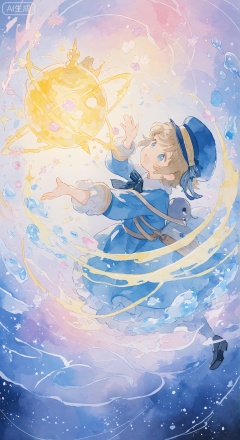 Line watercolor mix, Raymond and Matthias style, mysterious elements, creative background, "The Little Prince of Blueberry Sauce Collection"