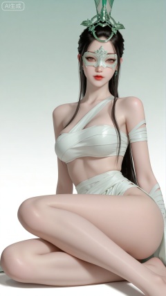 1girl, LJJ clothes, solo, eye mask, exquisite skin, sitting, looking at viewer, even illumination, very awa, Gradient background,