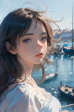 1girl,at the harbor,sea,wind,beautiful,upper body,looking at viewer,masterpiece,extremely detailed,best quality,very aesthetic