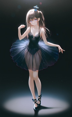 masterpiece,absurdres,best quality,(high quality:0.9),chromatic_aberration,Night,darkness,black theme,shy,embarrass,endured_face,//,1girl,tutu,ballerina,solo,breasts,ballet slippers,brown hair,ballet,crown,athletic leotard,looking at viewer,leotard,bare shoulders,collarbone,full body,arched back,see-through,cleavage,mini crown,bangs,small breasts,dress,hair ornament,one side up,blue eyes,simple background,purple eyes,long hair,//,photorealistic,Artist:na-ga,(quasarcake:0.2),(wanke:0.9),[Artist:chen bin],Artist:tidsean,[Artist:sk (askzy)],(artist:tokkyu:0.5),(artist:momoko (momopoco):0.5),Artist:himitsu_(hi_mi_tsu_2),//,highres,HDR,8K,high contrast,illustration,depth of field,(colorful),Tyndall effect,contrast,lens flare,