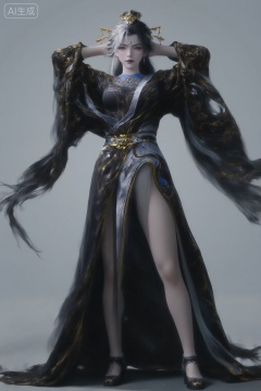 A highly detailed CGI image of a beautiful Asian woman with pale skin and long black hair,styled with a white streak and adorned with gold hairpins. She wears an elegant,ornate black and silver dress with a high slit,revealing her thigh.,wearing black high heels,, She stands with her back to the camera,arms raised above her head and hands crossed. Her posture is elegant and poised,with her body slightly turned to the side.,masterpiece,best quality,astonishing quality,ultimate aesthetics,absurd,best quality,ultimate aesthetics,masterpiece,emotional masterpiece,extraordinary above all,mastery of details,, Negative prompt: ng_deepnegative_v1_75t,(badhandv4:1.2),EasyNegative,(worst quality:2),,nsfw, Steps: 30, Sampler: DPM++ 2M, CFG scale: 3.5, Seed: 1624934726, Size: 1024x1536, Model hash: 062dad72b2, Model: 麦橘超然majicFlus_v1.safetensors, Denoising strength: 0, RNG: CPU, Lora 1: 20250904-1756986734983-0010, Lora Hash 1: 1d768e946d, Lora Weight 1: 1.2, Lora 2: 《墨染冥照》|古风插画|唯美意境画风系列, Lora Hash 2: 0c05ef6259, Lora Weight 2: 0.6, vae_name: automatic