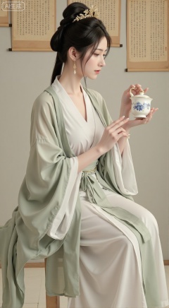SFW,(masterpiece,best quality:1.23), a beautiful girl, ethereal, Weijin style hanfu, flowing robes, ink wash painting style, fine brushwork, ancient boudoir, delicate tea set, ancient scrolls, subtle color palette, muted tones, soft natural light, artistic composition, concept art,,XbaifengsongyuYH,Xbigbreasts,Xyehuiling,XtangwutongXnb,Xyinyangjiaoshengnv,XmupeilingHongyi
