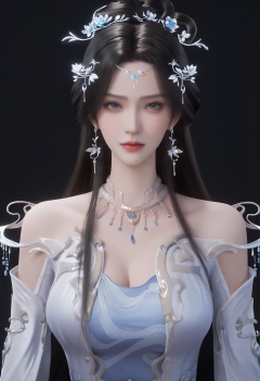 (score_9),<lora:安秒依-apony:0.82>,anmiaoyi,long hair,black hair,hair ornament,hair bun,updo,earrings,forehead jewel,necklace,bare shoulders,dress,long sleeves,jewelry,light blush,blue eyes,looking at viewer,front view,1girl,solo,(mature_female),<lora:Expressive_H-000001:0.8>,collarbone,(glamor:1.2),((beckoning)),(white_skin),(fair_skin:1.1),<lora:e肤色滑块:0.35>,ultra-detailed skin texture,detailed textures,BREAKsimple background,(black background),