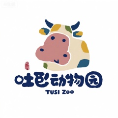 该图像具有风格化的插图,其中有一只牛的脸,颜色为粉红色,黄色,蓝色和绿色的柔和阴影。牛的位置位于中央,头部略微向右倾斜。在牛下,有深蓝色的大胆文字,上面写着“吐司动物园”。在此下面,在较小的文字中,有英文字母:“TUSI Zoo”。文本伴随着左侧的红色邮票状设计,似乎是签名或密封。背景是纯白的,强调了牛和文字的色彩丰富而有趣的设计。