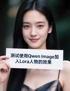 HDR photo of cinematic film still instagram photo,closeup face photo of 20 y.o,brown eyes,pale skin,smirk,black long straight hair,elegant dress,holding a sign with text "测试使用Qwen Image加入Lora人物的效果",, Negative prompt: ,nsfw, Steps: 20, Sampler: Euler, CFG scale: 4.0, Seed: 1168710681, Size: 1165x1504, Model hash: 98763a1277, Model: Qwen-Image_1.0.safetensors, Denoising strength: 0, RNG: CPU, Lora 1: 20250910_TinQwenImageGirl, Lora Hash 1: 9392a2ca14, Lora Weight 1: 1.0, vae_name: automatic