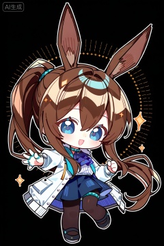 1girl, , solo, , long hair, , looking at viewer, , smile, , open mouth, , bangs, , blue eyes, , skirt, , simple background, , brown hair, , shirt, , long sleeves, , holding, , animal ears, , hair between eyes, , jewelry, , standing, , jacket, , full body, , ponytail, , :d, , pantyhose, , open clothes, , shoes, , chibi, , black footwear, , rabbit ears, , open jacket, , official alternate costume, , blue skirt, , black pantyhose, , ascot, , ring, , white jacket, , standing on one leg, , outstretched arm, , black background, , rabbit girl, , multiple rings, , thumb ring, , blue ascot, , amiya \(arknights\), , soft colors,, Negative prompt: ng_deepnegative_v1_75t,(badhandv4:1.2),EasyNegative,(worst quality:2),username,out of focus,bad proportions,cropped,watermark,signature,worstquality,grayscale,logo,text,blurry,low quality,bad anatomy,sketches,lowres,normal quality,monochrome,,nsfw, Steps: 29, Sampler: Euler a, CFG scale: 7.0, Seed: 719061948, Size: 1024x1536, Model hash: fe1361c879, Model: illustrious_v20_1.safetensors, Denoising strength: 0.0, RNG: CPU, Lora 1: Art-山楂糖, Lora Hash 1: 0b6112434b, Lora Weight 1: 0.8, vae_name: automatic