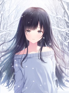 Masterpiece, of the best quality, stunning details, realistic, 1girl, idol, black flowing long hair, fair skin, off shoulder sweater, outdoors, (heavy snow), upper body,
