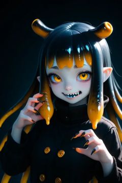 1girl, pale skin, tentacle hair, long hair, sharp teeth, sharp nails, dark sea background, bioluminescent glow, upper body, curious expression, masterpiece, best quality
