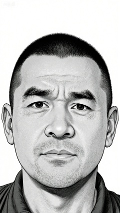 neatly trimmed hairstyle and a well-defined jawline. He has a neutral expression
