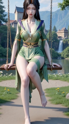 (masterpiece, top quality, best quality, official art, beautiful and aesthetic:1.2),Dynamic posture,(Sitting on the swing:1.39),natural skin texture,(Milky skin:1.2),1gir,solo,Dress, (Long legs, perfect proportions:1.2),(Sakura, butterfly:1.29),(huge breasts:2.99),(full breasts:2.99),castle, waterfall, mountains in the distance,,,,XbaifengsongyuYH,Xbigbreasts,XmengkeerXHY,XliuyuH