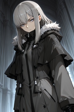 masterpiece,best quality,8k,gray_\(fate\),kikuyarou,1girl,grey_eyes,grey_hair,fate_\(series\),lord_el-melloi_ii_case_files,rainyazurehoodie,