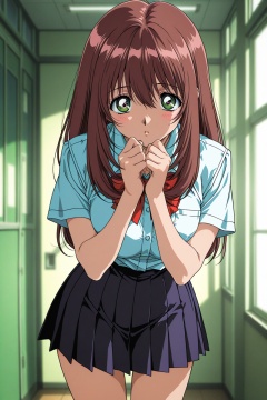 masterpiece,1990s \(style\),anime coloring,Yuuki_Mizuho_OVA,1girl,school uniform,