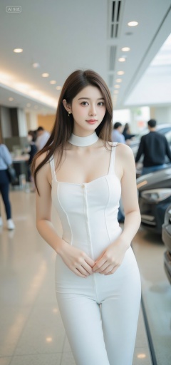 fine detail,A photo of an attractive young East Asian woman with long and straight light brown hair. She has fair skin and is wearing an exposed white smooth latex jumpsuit with a low neckline that highlights her full breasts. She wears a white collar around her neck,applies makeup,focuses on her eyes and lips,with cars and many people in the background. The indoor environment is bright,stylish and modern.,, Negative prompt: ng_deepnegative_v1_75t,(badhandv4:1.2),EasyNegative,(worst quality:2),,nsfw, Steps: 20, Sampler: Euler, CFG scale: 3.5, Seed: 2882604685, Size: 720x1536, Model hash: 49fe535dad, Model: 星梦·电影&电视剧_Film_fp8.safetensors, Denoising strength: 0, RNG: CPU, Lora 1: F.1极致摄影-雅魅俏佳人-CANDY, Lora Hash 1: 4107bd2b36, Lora Weight 1: 0.8, vae_name: automatic