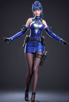 (upper_body:1.2),(looking at viewer:1.1),facing viewer,direct gaze,<lora:YQ_pony_wumengmeng_V4:0.8>,1girl,q1528437228,solo,blue hair,eyewear on head,earrings,gloves,jewelry,ponytail,detached sleeves,long hair,pantyhose,belt,dress,holster,blunt bangs,high heels,black hair,jacket,black footwear,brown eyes,thigh holster,collar,sleeveless,blue eyes,skirt,blue dress,grey eyes,belt pouch,thigh strap,BREAK (simple background,pure black background,black background:1.1),perfect anatomy,