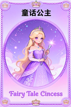 mxxskp,风格为梦幻手绘童话像素风,以粉紫为主调营造浪漫感。中间椭圆形内是手绘的金发公主(着紫裙、持魔杖、戴皇冠),背景为粉紫渐变星空,点缀亮片与光斑;椭圆形边框是粉紫色珍珠链条纹理像素边框,精致优雅。背景纹理是粉紫渐变的柔滑质感,四周装饰金色皇冠(四角与顶部)。字体上,上方中文“童话公主” 是黑体字体,黑色字体清晰醒目;下方英文“Fairy Tale Cincess”(拼写艺术化,应为“Princess”)为优雅手写衬线字体,粉紫色调与整体色调统一,笔画带曲线与装饰性,像素块契合童话浪漫感。