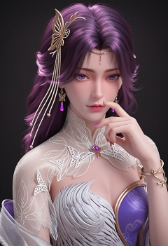 (score_9:1.2),(score_8_up:1.2),(source_anime:1.2),(source_cartoon:1.2),(rating_safe:1.1),8k,1girl,(upper body:1.1),BREAK<lora:YQ_pony_yunxi_V8:0.8>,q1528437228,long hair,dress,purple hair,hair ornament,jewelry,earrings,braid,cleavage,bracelet,purple dress,BREAK(score_9:1.2),(score_8_up:1.2),masterpiece,best quality,very aesthetic,(white skin:1.2),(fair skin:1.2),(Ivory skin:1.2),(shiny skin),perfect anatomy,(hourglass),(long legs:0.9),(leggy:0.9),perfect face,(white skin:1.1),(fair skin:1.1),(Ivory skin:1.1),shiny skin,(simple background,pure black background,black background:1.1),
