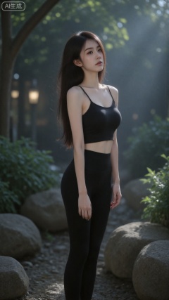 anime artwork cinematic light,1girl,solo,A tall, voluptuous, slender lady,wearing tight yoga pants, yoga crop top, dynamic pose,extremely detailed . anime style, key visual, vibrant, studio anime, highly detailed,CNgirl,bf-girl
