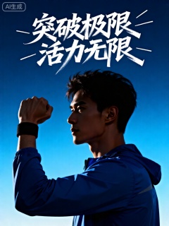 sasylnhb,背景是深蓝色天空,中间是一位戴着黑色运动手环、穿着蓝色外套的人物侧身像,人物握拳抬起手臂。上方有白色的“突破极限活力无限” 文字,文字周围有白色线条装饰。