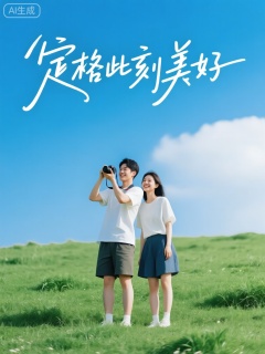 mlxqx,背景是蓝天和绿色草地,草地上有两人,一人举着相机拍照,一人对着镜头比耶微笑。上方有白色手写风格的“定格此刻美好” 文字,传递出记录幸福瞬间的心意。