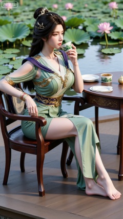 (masterpiece, best quality:1.2),1girl, solo, ornament, , breasts, no eye shadow, even lighting, Sitting, pavilion, Table, chair, drinking tea, Grasp Extremely gaiwan, side_view, very awa, room background,,(Stockings, high heels:1.29),(huge breasts:2.99),(full breasts:2.99),,(Background with lotus pond and pink lotus flowers:1.39),XbaifengsongyuYH,Xbigbreasts,XmengkeerXHY,XliuyuH,Xyuanyaohongyi,Xyuanyaoxizao,Xyuanyaomuyu,Xyuanyaohongqun,XhanyunzhiXM,Xzhaoxinmeng,XxinruyinXM
