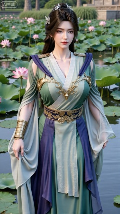 (masterpiece, best quality:1.2),1girl, navel, solo, midriff, bare shoulders, hair ornament,(long hair),(High double ponytail:1.19), red lips, BREAK, (looking at viewer:1.39), chinese clothes,(Holographic Color long dress:1.36), (lace,Rainbow Gradient Color:1.28), BREAK,blurry, solo focus, long hair, lips, daytime, lipstick, outdoors, standing,upper body,(huge breasts:2.89), background, solo, makeup,(Stockings, high heels:1.29),(huge breasts:2.99),(full breasts:2.99),,(Background with lotus pond and pink lotus flowers:1.39),,Xbigbreasts,XbaifengsongyuYH,XzhenniteH,XliuyuH,XfenghuangqipaoXF,XfenghuangqipaoXF,Xyuanyaohongqun,Xyuanyaomuyu,Xyuanyaoxizao,Xyuanyaohongyi,Xqixiucosplay,Xyechangong,XyechangongXF,XxinruyinXM,XhanyunzhiX,Xzhaoxinmeng,XhanyunzhiXM