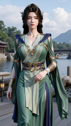 (masterpiece, best quality:1.2),1 girl, solo, long hair, black hair, hair accessories, clothing, cleavage cuts, long dress, jewelry, upper body, earrings. Background is outdoor, sky, clouds, water, trees, architecture, landscape, lantern, mountain, dragon, architecture, bridge, east Asian architecture, fog, pagoda,,(huge breasts:2.99),(full breasts:2.99),,Xbigbreasts,XbaifengsongyuYH,XzhenniteH,XliuyuH,XfenghuangqipaoXF,XfenghuangqipaoXF,Xyuanyaohongqun,Xyuanyaomuyu,Xyuanyaoxizao,Xyuanyaohongyi,Xqixiucosplay,Xyechangong,XyechangongXF,XxinruyinXM,XhanyunzhiX,Xzhaoxinmeng,XhanyunzhiXM