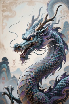 JYZGF, guohuaf, Child Graffiti Painting, mudiaoshanshui, masaikefeng, huoyangxiao, Adam Riches style works, the precise lines of the portrait are painted with single-line continuous lines, allowing charcoal to wander on paper into improvised lines. His lines are sometimes dense and sometimes sparse, building a three-dimensional sense and layered layer by layer. These seemingly disordered line trajectories ultimately reconstruct the classical Baroque style and extremely traditional narrative. The anthropomorphic Chinese style zodiac dragon has a mysterious feeling, gorgeous and cool patterns, texture, and cool colors. The whole picture exudes a beautiful and weird temperament, which is stunning and charming but also makes people feel dangerous and fearful. The ultimate detailed portrayal, the ultimate three-dimensional texture, luxurious, cumbersome, magnificent, atmospheric, and ultra-high-definition picture quality.,cluster