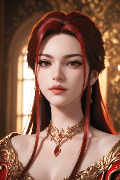 score_9,perfect lighting,score_8_up,score_7_up,best quality,masterpiece,high resolution,flawless skin,sharp focus,1girl,solo,<lora:赵襄儿-女皇:0.7>,jewelry,long hair,red hair,portrait,brown eyes,official alternate costume,