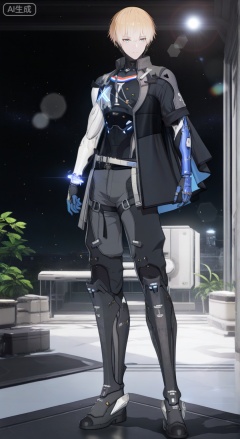 lee/(PGR),solo,short hair, blue eyes, blonde hair, gloves,jacket, 1boy,male focus,full body,boots,expressionless,depth of field, light particles, lens flare, masterpiece,best quality,((artist:reoen),(artist:fuzichoco),(artist:atdan),(artist:torino_aqua:0.5),year 2024:0.5),(artist:omone_hokoma_agm:0.8), 2d, anime,full body,standing