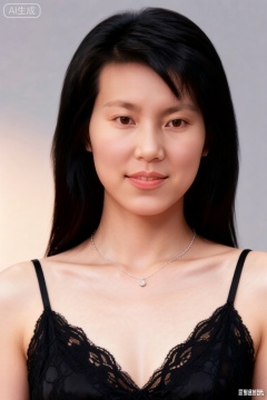 12K Phase One XF IQ4, upper body composition (above chest to top of the head, characters account for 80% of the picture), Chinese women (warm yellow and transparent skin, no flaws, delicate pores, natural powdery dizziness in the apple band). Light makeup details: The light foundation only uniforms the skin tone (no heavy feeling), light brown eyeshadow swipes the eye sockets, the lip glaze is light pink bean paste color (lip lines are light and natural), and the eyebrows retain the native hair flow (slight curves show gentleness). The sexy outfit is a black thin lace suspender (the V-neck is slightly opened to 2cm below the clavicle, the lace pattern is minimalist and transparent, and the edges are not decorated). The hairstyle is black and straight (middle part, the hair is naturally drooping on the shoulders, and there is no trace of the styling product). Only a thin silver collarbone chain (chain length 38cm, single small diamond pendant). The background is a cold gray matte background plate (without texture), with 45° natural side light on the left (light forms shallow shadows on the chest, the face is evenly lit, the skin is transparent and not oily, and the lace texture is clear). The overall texture is uncultivated, with a minimalist style highlighting natural sexy and refreshing skin.