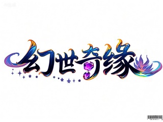 YXLG,该图像以风格化的中文文本“幻世奇缘”(huànshìqíyuán)为核心,采用2D手绘风格,文字边缘饰以流动的彩色光带,仿佛蕴含着无尽的生命力。主文字上方悬浮着两颗璀璨的紫色宝石,闪烁着神秘的光芒。文字下方,左侧点缀着细小的星辰图案,右侧则是一朵绽放的奇幻花朵。背景为纯净白色,衬托出文字的绚丽多彩,整体设计充满梦幻与浪漫。