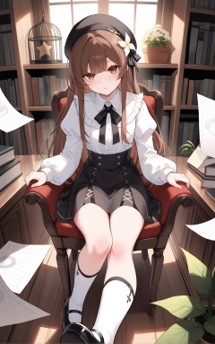 msk,CG rendering,ka ra ra ge tsu ne,gwwj,key999,masterpiece,best quality,very aesthetic,extremely delicate and beautiful,huge filesize,amazing quality,32K UHD,ultra-detailed,photorealistic skin,depth of field,8k,(sheya:0.4),(Qiandaiiu:0.3),(koahri:0.4),sexy,(MeIoN:0.4),(wumai:0.4),(ssr:0.7),(SG:0.9),(netural:0.6),(Fungi:0.3),(ABPART:0.8),(D. I .S.H:0.6),(sorananiiro:0.4),(san:0.3),((eichi)_nagatochi:0.9),mature_female,(torino:0.2),glamor,wallpaper,cosplay,cinematic_angle,real,(by Devilworld:0.3),clear,cute,bishoujo,kawaii,nsfw,newest,latest,(hitokomoru:0.4),(miyuki:0.8),beautiful detailed eyes,beautiful detailed lips,extremely detailed eyes and face,delicate features,graceful pose,ethereal atmosphere,soft lighting,enchanting,illustration,anime style,vivid colors,sharp focus,professional,extreme detail description,ZX light,masterpiece,best quality,very aesthetic,extremely delicate and beautiful,Noise and grain,huge filesize,amazing quality,foreshortening,cinematic_angle,//,sumisokome,1girl,birdcage,cage,plant,solo,potted plant,indoors,socks,sitting,window,skirt,bird,hat,shirt,book,white shirt,long hair,long sleeves,brown hair,white socks,bookshelf,looking at viewer,black skirt,ribbon,shoes,puffy sleeves,neck ribbon,stool,shelf,paper,black footwear,kneehighs,brown eyes,chair,black ribbon,flower,