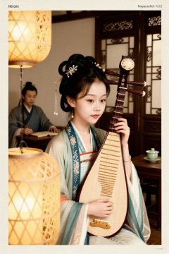 8K 超写实,宝丽来Impossible Project 胶片质感1.2。中国美少女面部特写,发髻盘成祥云造型,点缀珍珠流苏,眼妆晕染黛青色,珊瑚色唇妆。在苏州评弹茶楼内,暖黄光3000K,透过竹编灯笼洒下,照亮她怀抱琵琶轻拨琴弦的侧脸,背景可见身着长衫的说书人及雕花屏风。画面呈现胶片显影不均的暖色块,相纸表面添加竖条纹理(密度0.1)模拟宣纸质感。使用尼康F3 相机搭配85mm f/1.4 镜头,光圈f/3.5,快门1/125s,展现传统曲艺的雅致韵味。