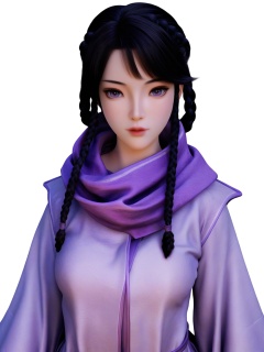 score_9,black hair,lips,1girl,medium breasts,clothes,bangs,braid,multiple braids,solo,purple eyes,robe,scarf,purple scarf,looking at viewer,white background,simple background,cowboy shot, <lora:SF_WangNing_Pony_Realism2.3-000003:0.7>,