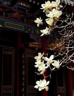 这张照片捕捉了一枝盛开的白色玉兰花的特写,背景是一座传统的中国寺庙。玉兰花有着大而光滑的花瓣和突出的黄色雄蕊,在前景中稍微偏右的位置显著展示。树枝细长且呈深棕色,在花朵中可以看到一些未开放的小花蕾。, , 在背景中,可以清楚地看到寺庙的建筑,其特点是深红色的柱子和装饰精美的屋檐。屋檐上装饰着蓝、红、金三色的华丽图案,增添了丰富的文化气息。寺庙的木门也清晰可见,门上有垂直的板条和金色镶边。其中一扇门上用金色刻有汉字,进一步增强了场景的文化真实性。, , 照片中的光线柔和,突出了玉兰花的白色花瓣,同时在寺庙的外墙上投下了柔和的阴影。整个构图平衡了花朵的自然美与寺庙的精细工艺,创造出一种和谐宁静的视觉体验。照片充满了质感和色彩,重点展现了中国传统元素。, Negative prompt: ng_deepnegative_v1_75t,(badhandv4:1.2),EasyNegative,(worst quality:2),,nsfw, Steps: 30, Sampler: Euler, CFG scale: 7.0, Seed: 1387022945, Size: 1140x1472, Model hash: 98763a1277, Model: Qwen-Image_1.0.safetensors, Denoising strength: 0, RNG: CPU, Lora 1: Qwen - 氛围感写实风景, Lora Hash 1: 990d3dae6f, Lora Weight 1: 0.8, vae_name: automatic