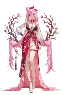 8k,best quality,masterpiece,(ultra-detailed),(high detailed skin),((artist:reoen),(artist:fuzichoco),(artist:atdan),(artist:torino_aqua),year 2024:0.8)1girl,[artist:wlop],[artist:ningen_mame],artist:ciloranko,[[artist:rhasta]],artist:tidsean,colorful,full body,full shot,standing,(solo:1.2),simple background,(white background:1.2),hand on own hip,(white background:1.1),looking at viewer,<lora:Elysia-ill-Tanger:0.9>,elysia \(honkai impact\), Elysiacn, clothes: Elysiacn red-and-pink chinese dress, Elysiacn hair ornament, 1girl, pink hair, pointy ears, breasts, long hair, elf, purple eyes, flower, bangs, hair flower, Peach branch with peach blossom