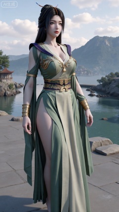 (masterpiece, best quality:1.2),1 girl, solo, long hair, black hair, hair accessories, clothing, cleavage cuts, long dress, jewelry, upper body, earrings. Background is outdoor, sky, clouds, water, trees, architecture, landscape, lantern, mountain, dragon, architecture, bridge, east Asian architecture, fog, pagoda,,(huge breasts:2.99),(full breasts:2.99),Xbigbreasts,XbaifengsongyuYH,XzhenniteH,,XhanyunzhiX,Xzhaoxinmeng,XhanyunzhiXM,XhanyunzhiXY,XliuyuY,XliuyuYH,XhnayunzhiXYH