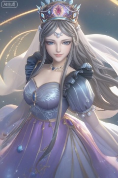 score_9,score_8_up,score_7_up,1girl,solo,long hair,looking at viewer,grey hair,blue eyes,jewelry,lips,dress,crown,smile