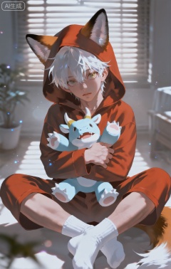 (artist:mazjojo:0.53),(artist:pigeon666:0.37),(artist:zawar379:0.57),(artist:remsrar:0.35),(artist:yoneyama mai:0.64),(yokoyari mengo:0.6),(colored pencil medium),(rei sanbonzakura),(flat color:1.2),masterpiece,best quality,highres,absurdres,extremely detailed,amazing quality,very aesthetic,ultra - detailed,scenery,depth of field,volumetric lighting,high definition,detailed eyes,detailed beautiful face and eyes,best aesthetic,good colors,bright skin,lots of details,1kid,child focus,adorable look,Anime style,(cute expression:1.3),(wearing red fox - hooded pajamas:1.2),sitting on a fluffy rug in a warm, cozy room, a night - light glowing in the corner,(dynamic pose:cross - legged, holding a small stuffed animal),wearing a full - body red fox - hooded pajamas #Red Fox Hooded Pajamas, with a bushy tail at the back and realistic - looking fox ears on the hood, white - tipped paws on the sleeves and feet,a pair of small pink slippers,a red and white striped blanket nearby, intricate details,fox - pajama details,soft room lighting,cel - shading,anime key visual,ultra HD,8k,Phainon