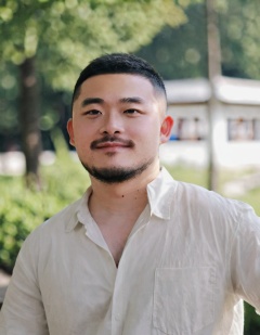 XLCNIBOBO, solo, looking at viewer, smile, short hair, shirt, black hair, 1boy, white shirt, upper body, male focus, outdoors, blurry, blurry background, facial hair, beard, realistic, mustache, very short hair  <lora:SDXL.亚洲百福萌XLCNIBOBO9:0.86>