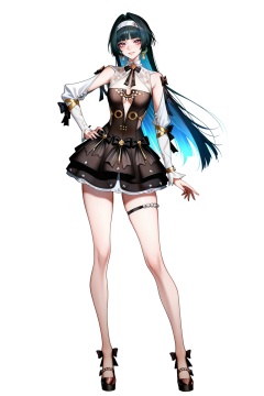 8k,best quality,masterpiece,(ultra-detailed),(high detailed skin),masterpiece,best quality,<lora:wqmt-gnoob-Tanger:0.6>,Path to Nowhere  \(video game\),game CG,cool,colorful,detailed light,light leaks,sunlight,bokeh,blurry foreground,ray tracing,lens flare,cinematic lighting,full body,full shot,standing,looking at viewer,(solo:1.2),simple background,(white background:1.2),hand on own hip,(white background:1.1),<lora:yaojy-noob-Tanger-000014:0.8>,alternate costume, Astra Yao \(zenless zone zero\), clothes: yjy black short dress with white detached sleeves, 1girl, solo, long hair, jewelry, earrings, hairband, thigh strap, bare legs,A full-body portrait of a young girl,standing gracefully,pastel art style,high-key lighting,shoujo manga influence,hd quality,delicate details,
